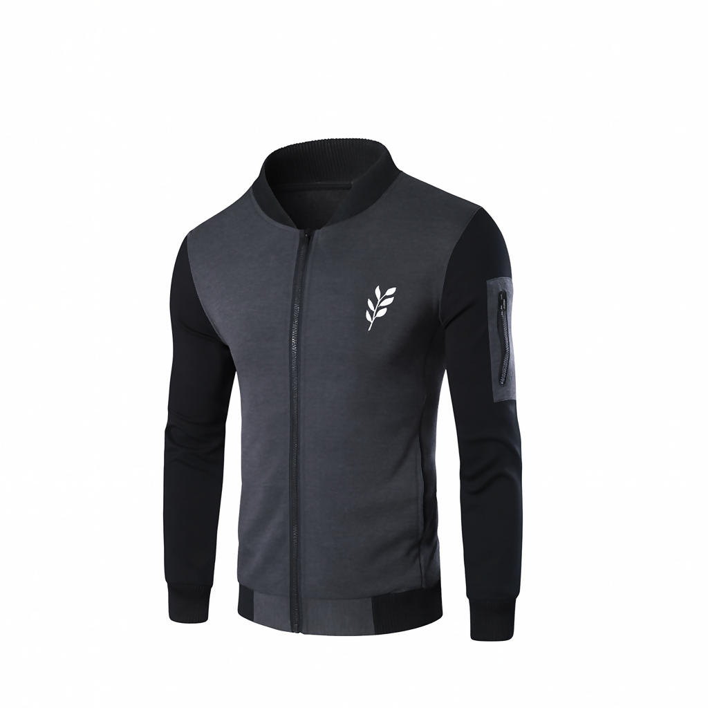 New Winter Collection Charcoal Grey Leaf Printed Zipper Jacket for Men & Boys – Warm & Stylish Fleece Outerwear
