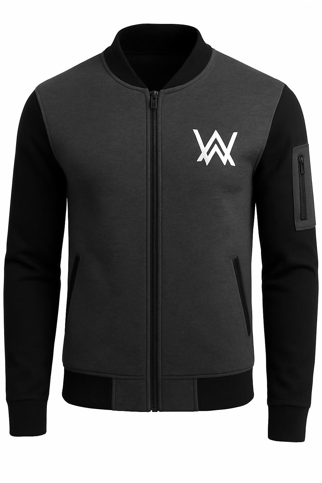 NEW Winter Collection Charcoal Grey WA Printed Zipper Jacket for Men & Boys – Premium Fleece Material, Stylish Bomber Design, Full Front Zipper Closure