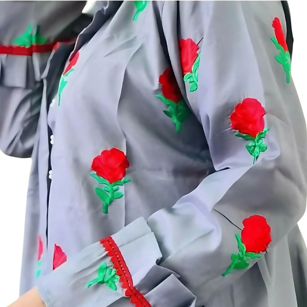 Elevate your style with this elegant Silk Fancy Gown 3pc Set featuring a finely stitched silk shirt with trouser and a beautifully embroidered gown with large flair. Available in black, blue, and gray, this outfit blends luxury, comfort, and timeless fashion for every occasion.