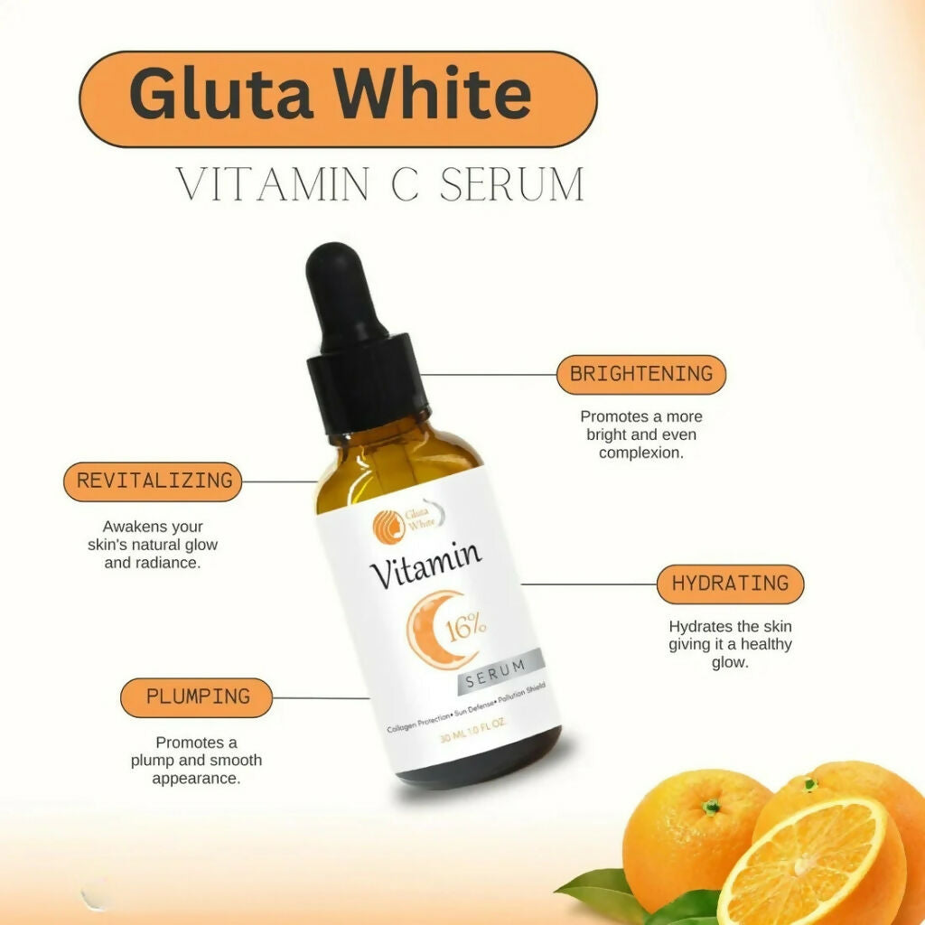 Revitalize and brighten your skin with Gluta White Vitamin C Serum — a powerful antioxidant-enriched formula with L-Ascorbic Acid, Hyaluronic Acid, and Ferulic Acid. It reduces fine lines and wrinkles, fades dark spots, boosts collagen production, and improves skin texture. Ideal for daily use, it leaves your skin smooth, radiant, and youthful.