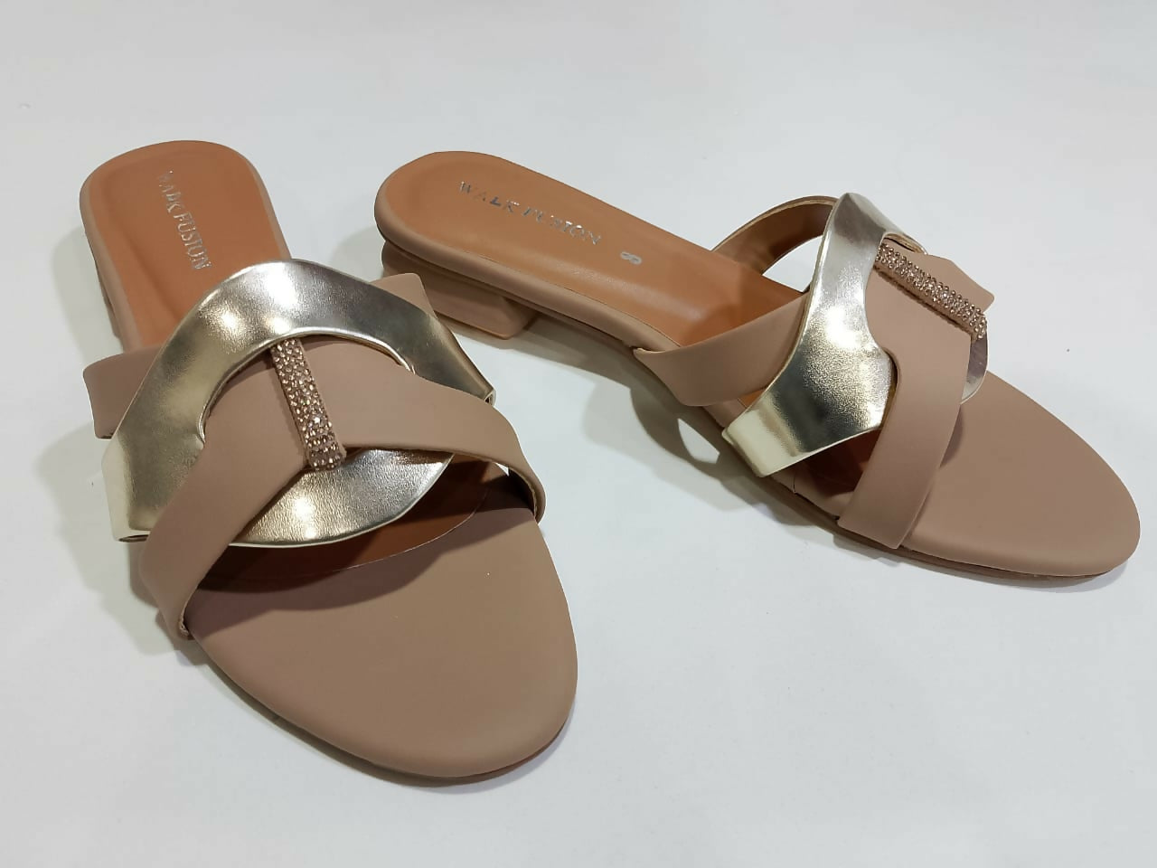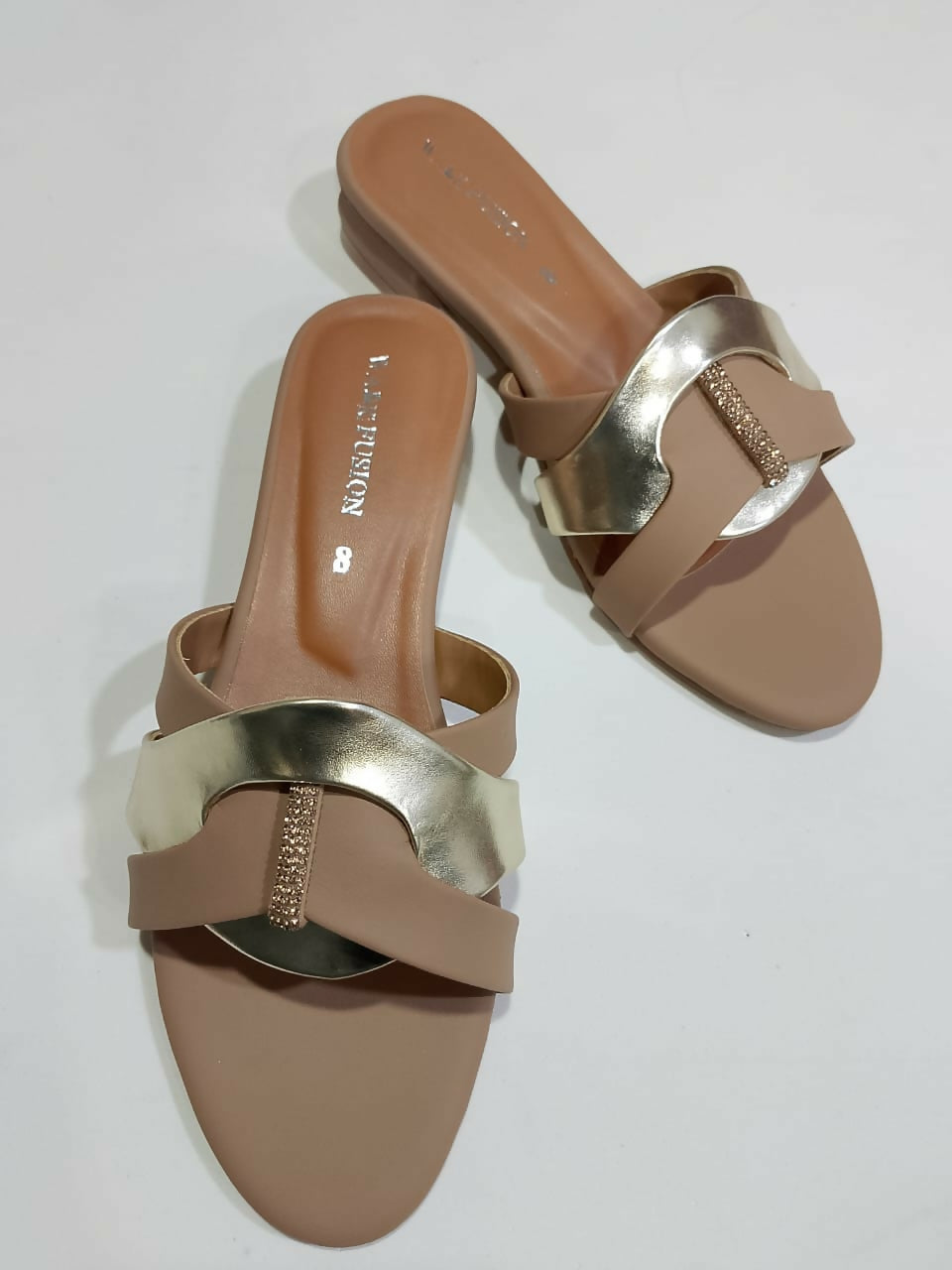 Women’s Tan & Gold Flat Sandals | Stylish Slides