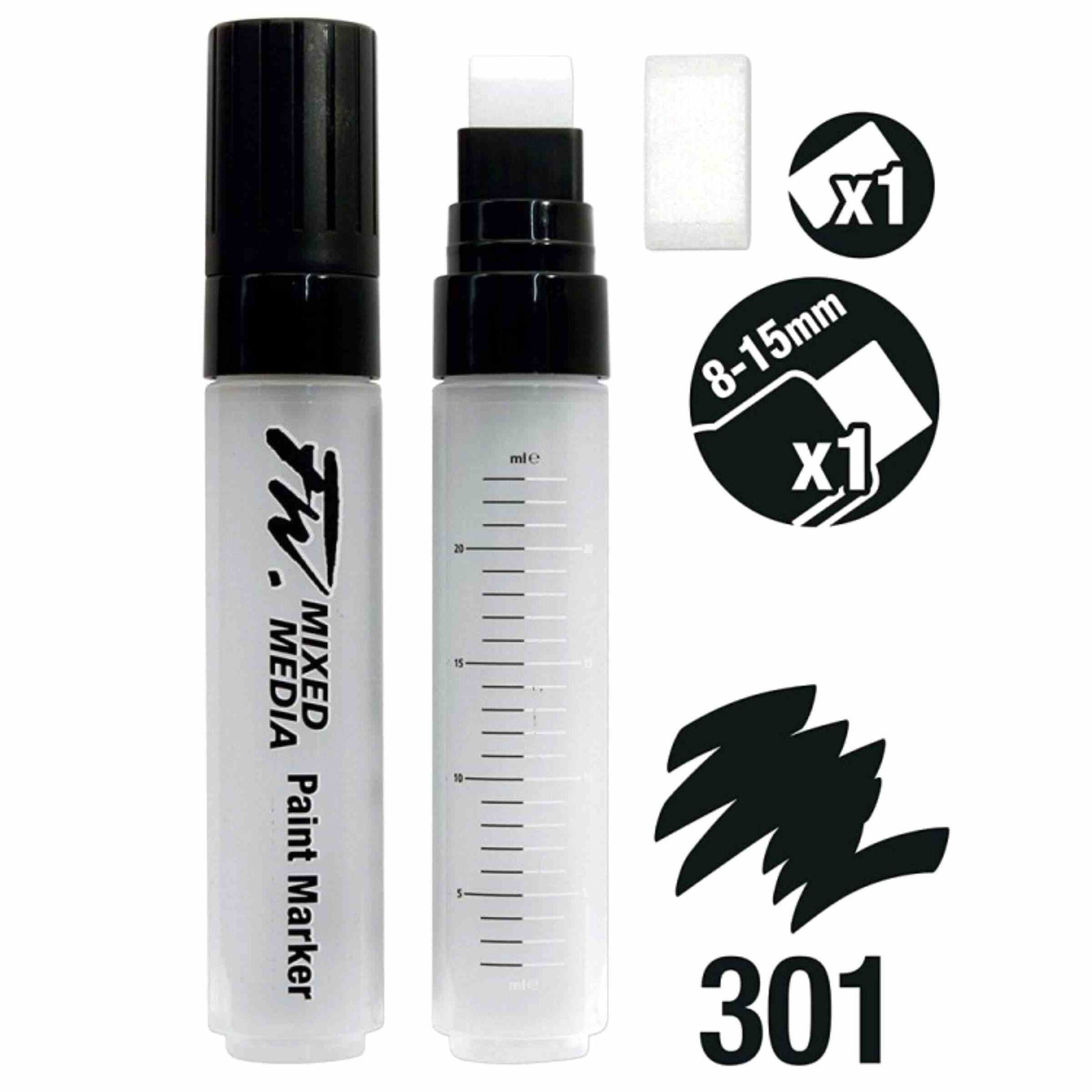 This is a pack of one FW Mixed Media Paint Marker equipped with a Large Flat 8-15mm nib. The set also includes a spare nib of the same size.