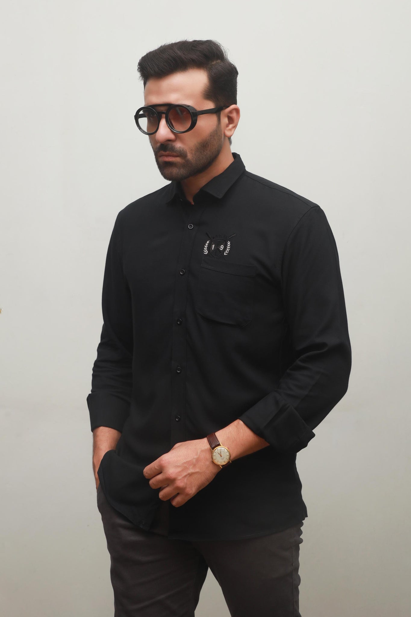 MEN'S JET BLACK FASHION CASUAL SHIRT
