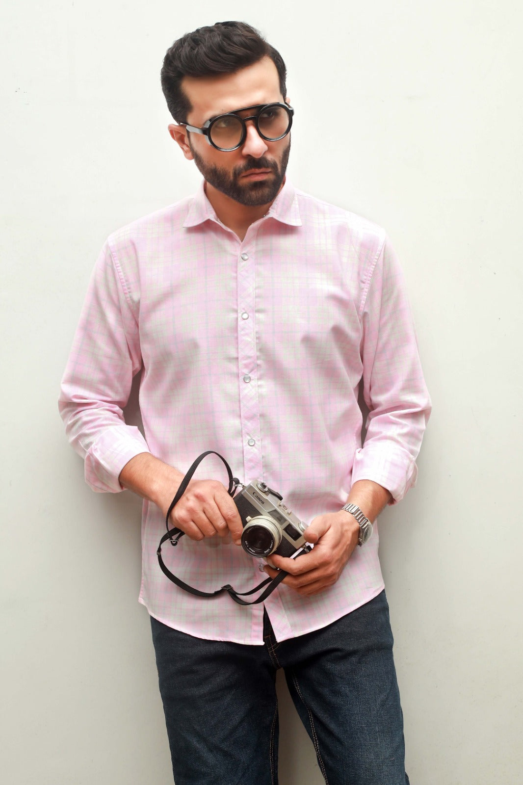 MEN'S LIGHT PINK CHECK CASUAL SHIRT