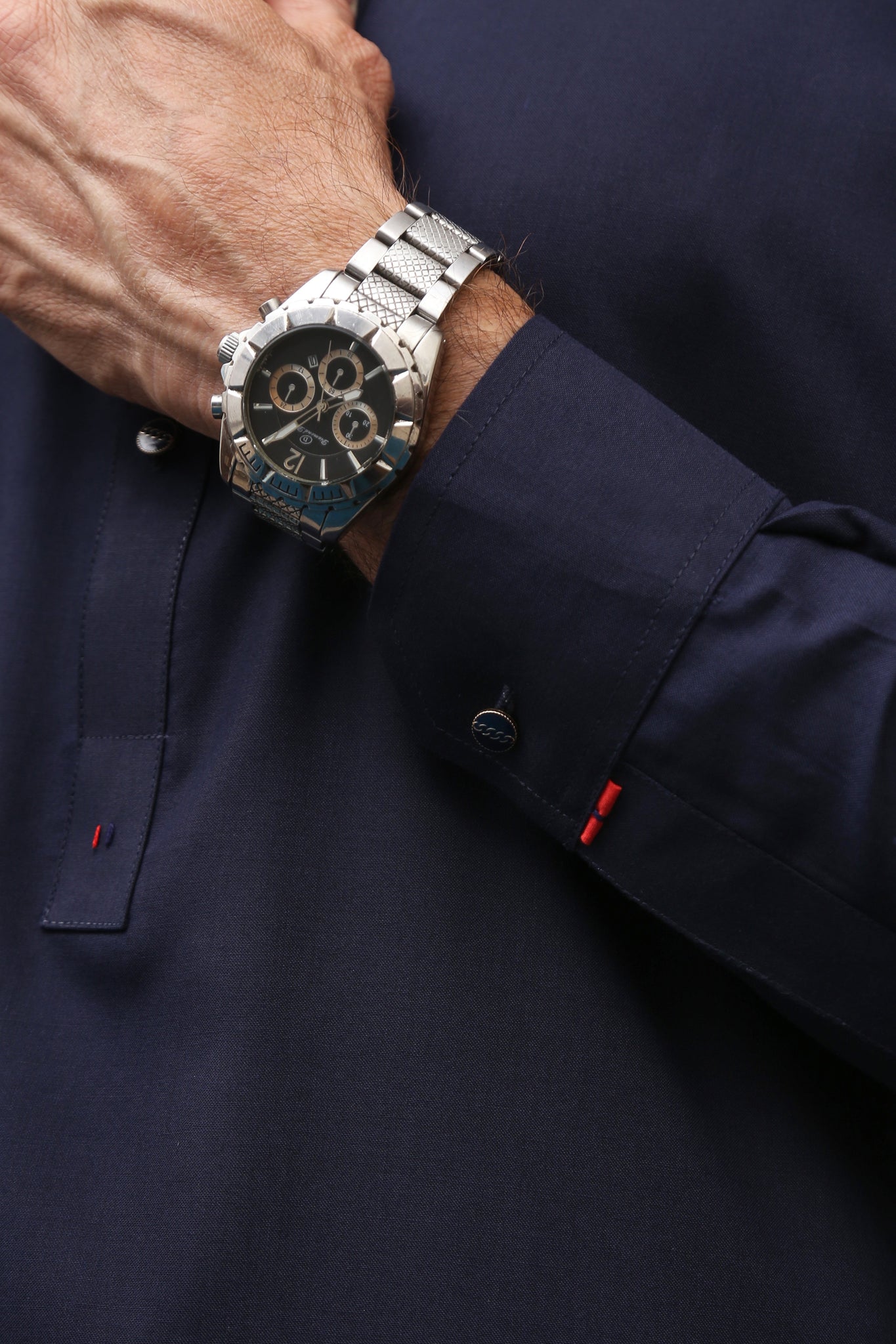 NAVY BLUE WASH & WEAR MEN'S SHALWAR KAMEEZ WITH RED CONTRAST