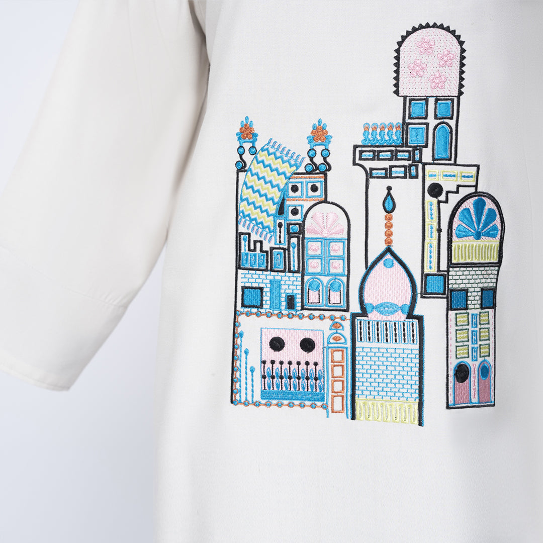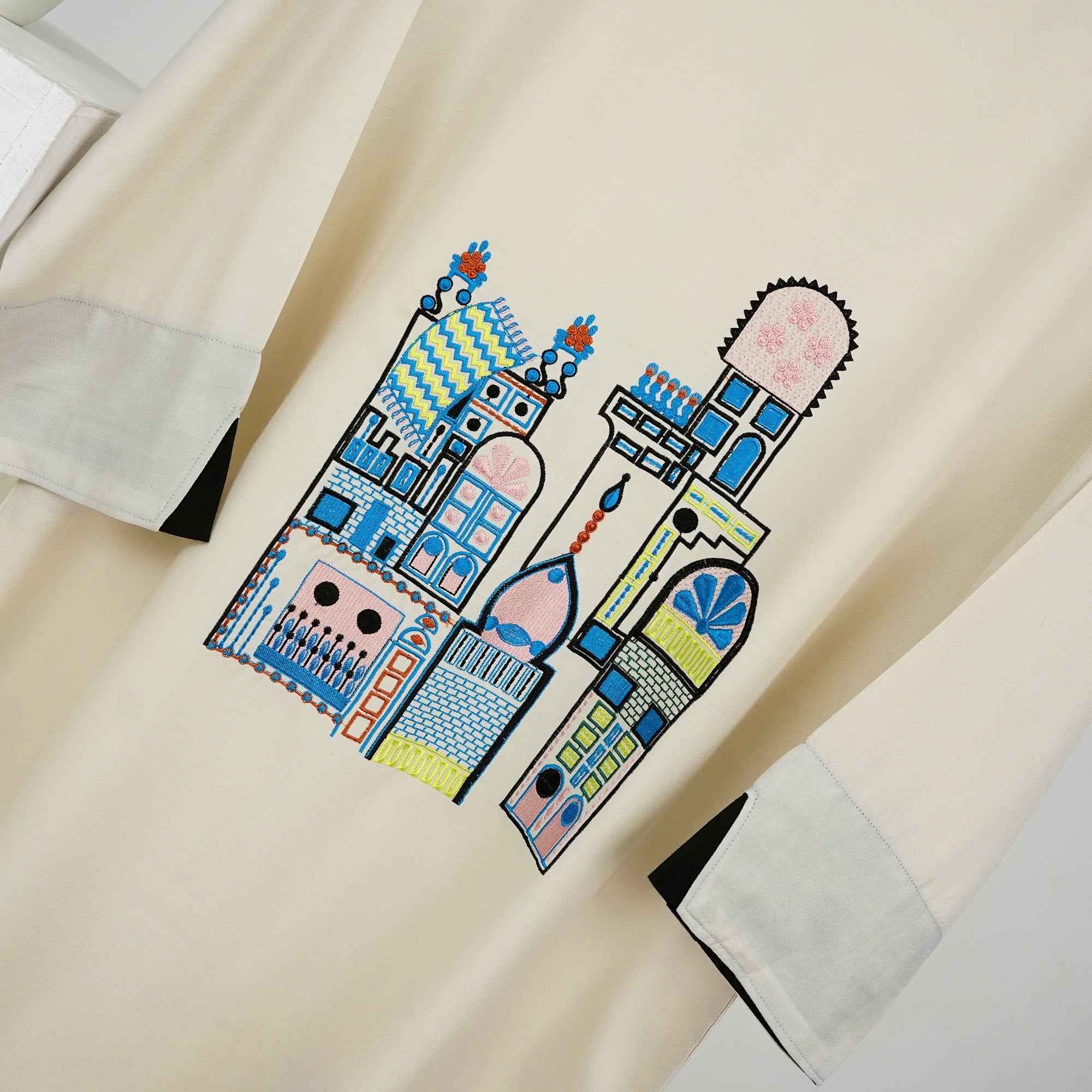 Boat neck loose-fit shirt with embroidery on the front đ¸