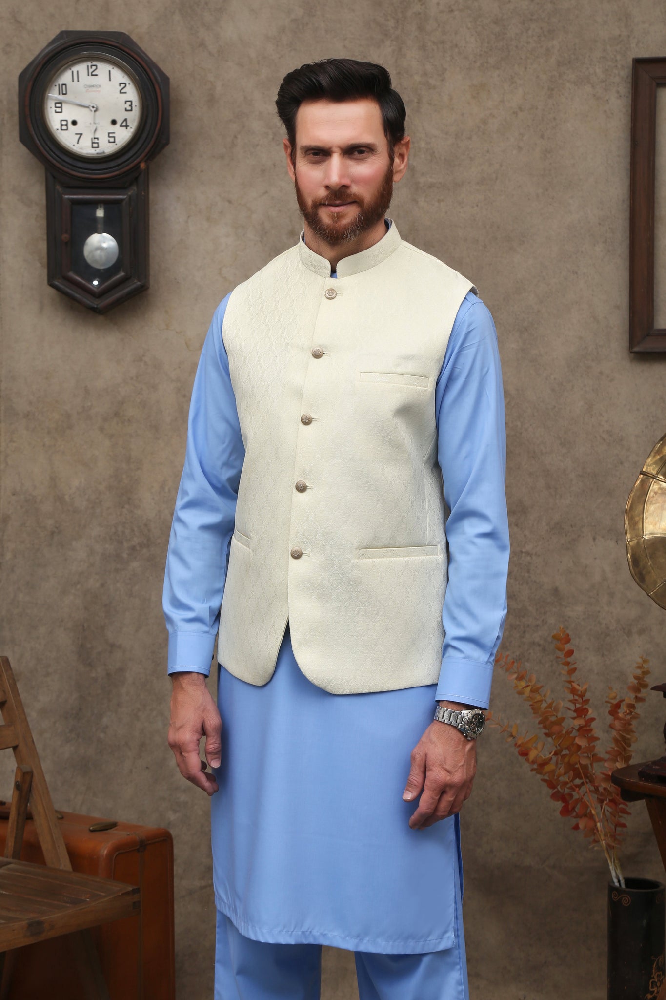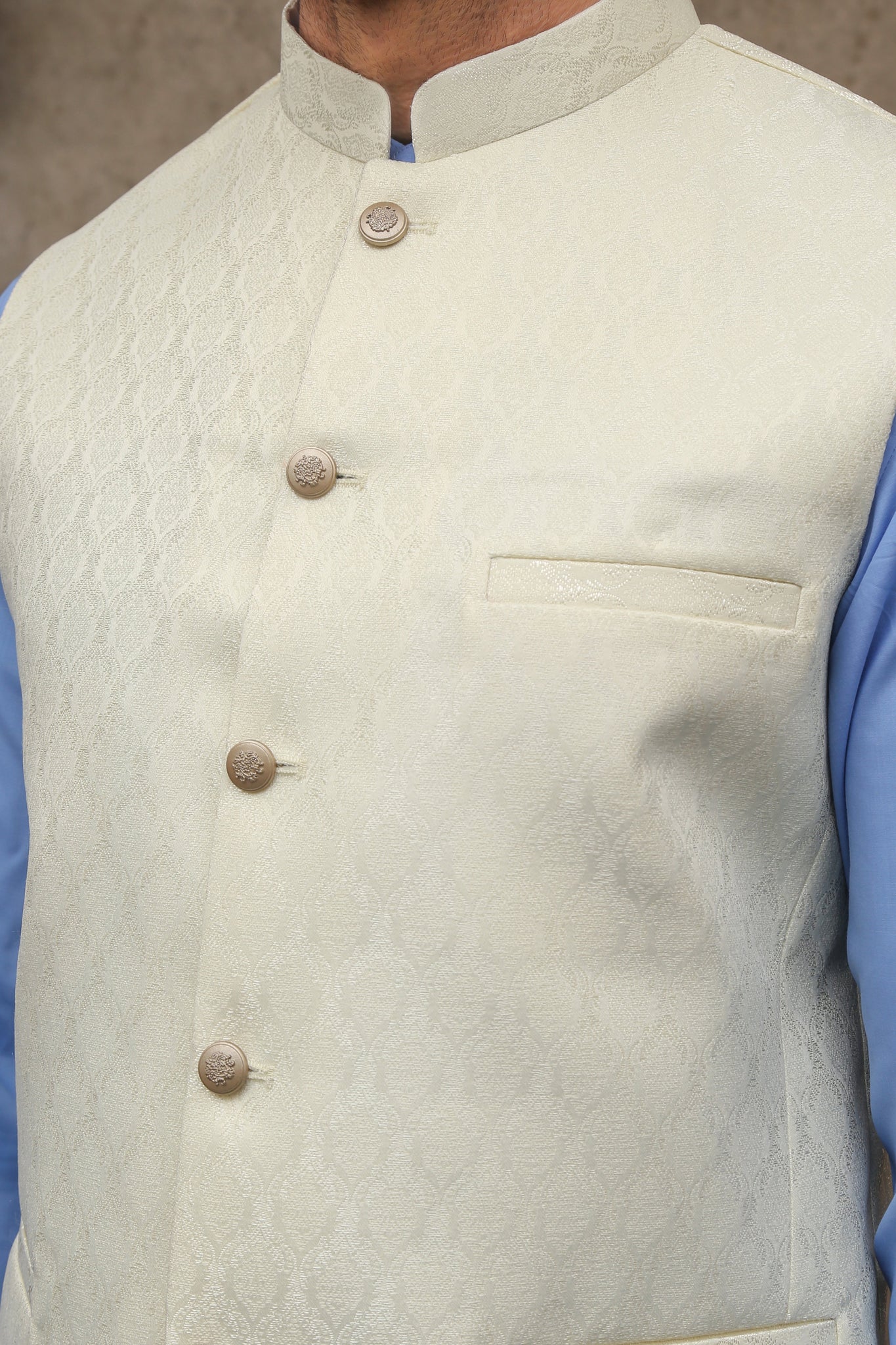 OFF WHITE CREAM JAMAWAR MEN'S WAIST COAT