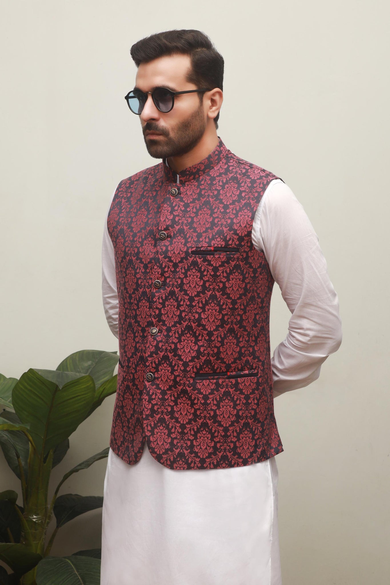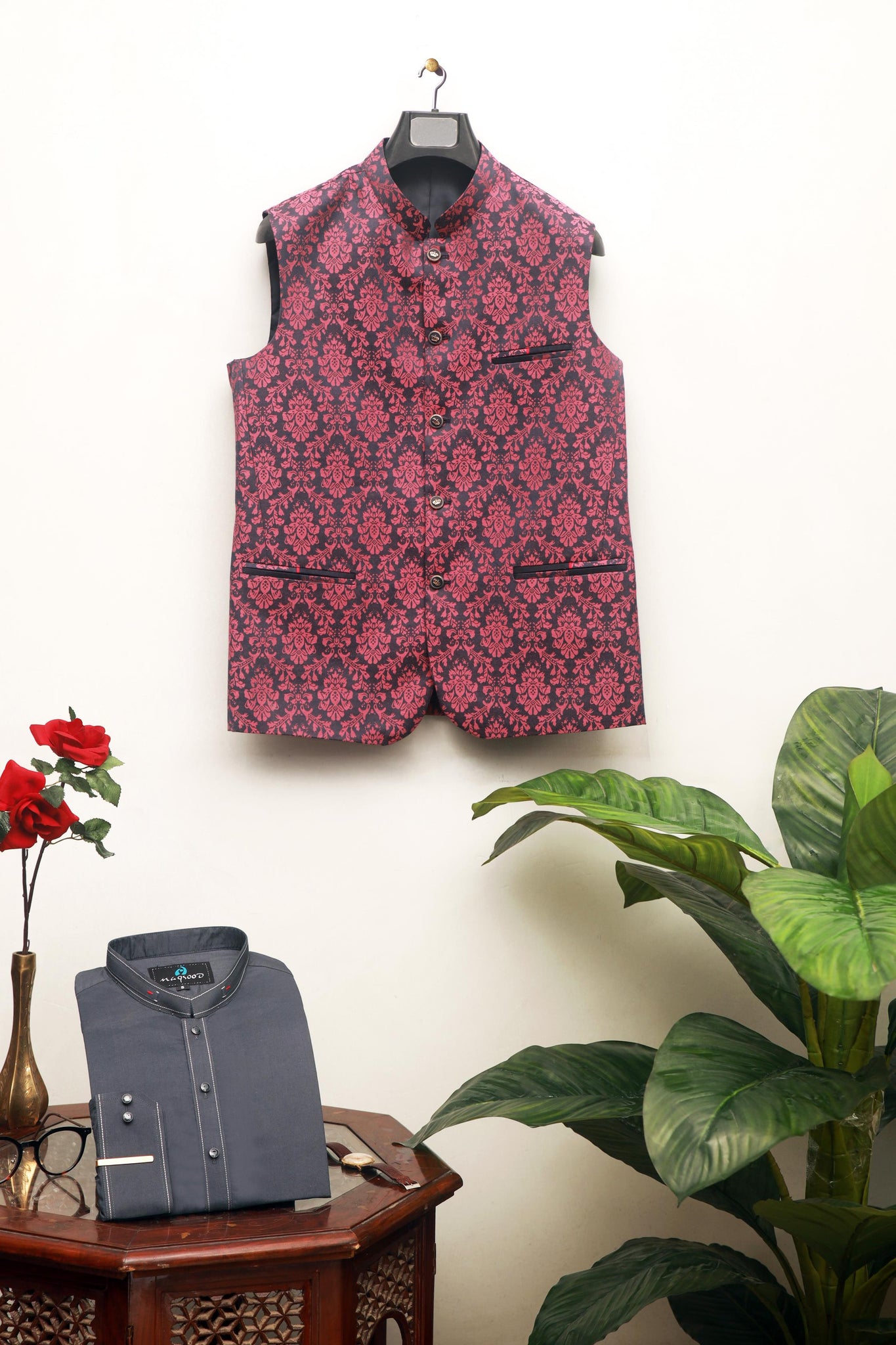 PURPLE PRINT JAMAWAR MEN'S WAIST COAT