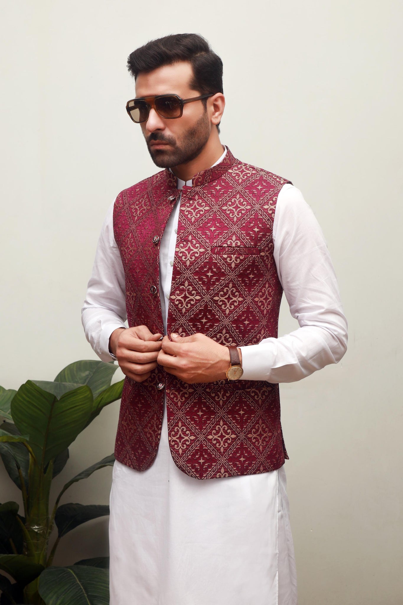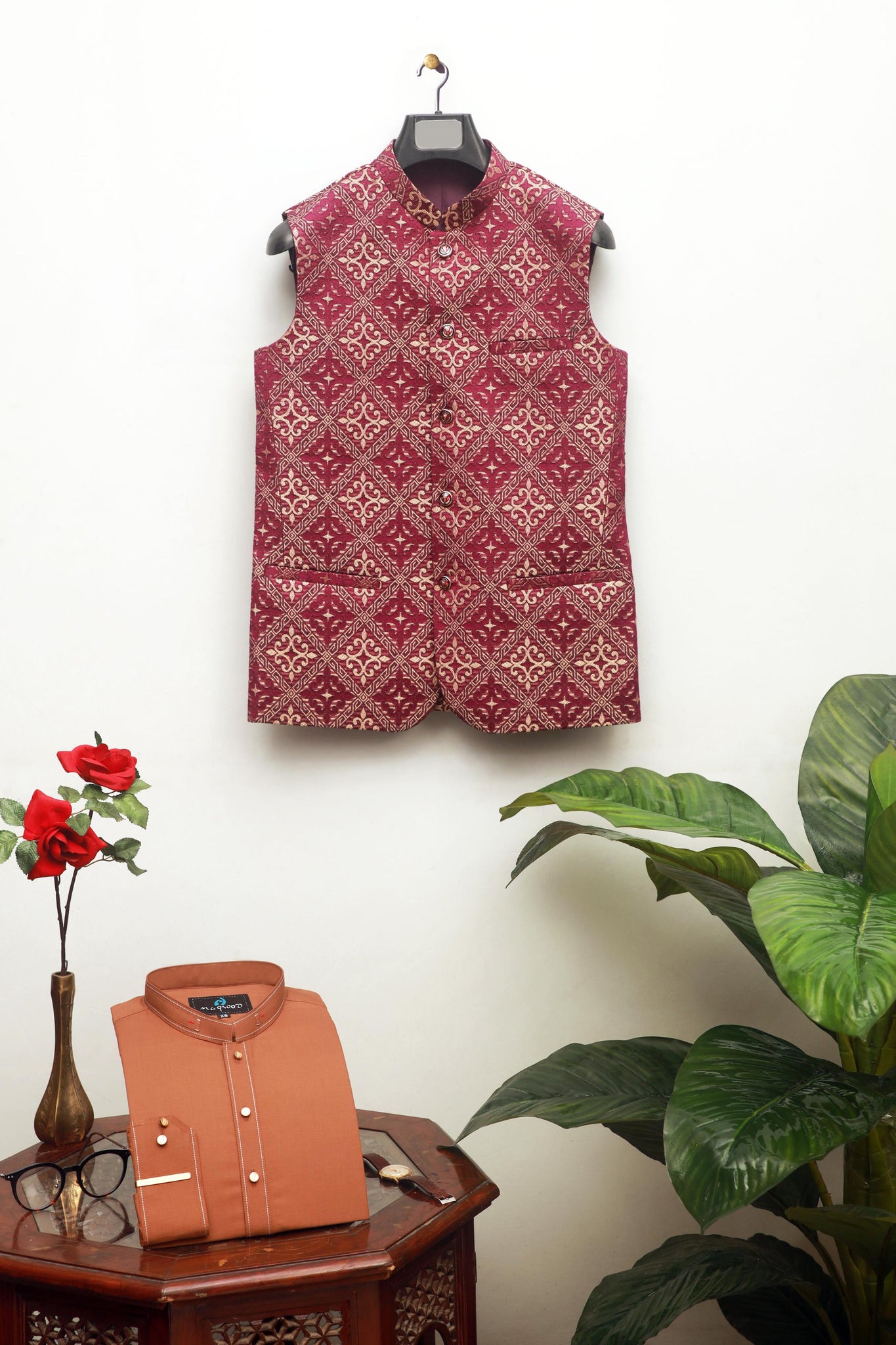 PURPLE EMBROIDERY JAMAWAR MEN'S WAIST COAT